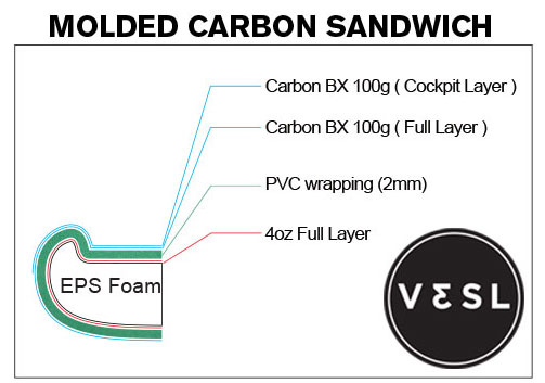 VESL’s innovative MOLDED CARBON / PVC SANDWICH TECHNOLOGY sets a new standard for lightness and efficiency, offering the lightest molded carbon sandwich construction available. Each prone paddleboard feels incredibly agile on the water, delivering smooth glide and effortless acceleration for longer, faster sessions with minimal fatigue.