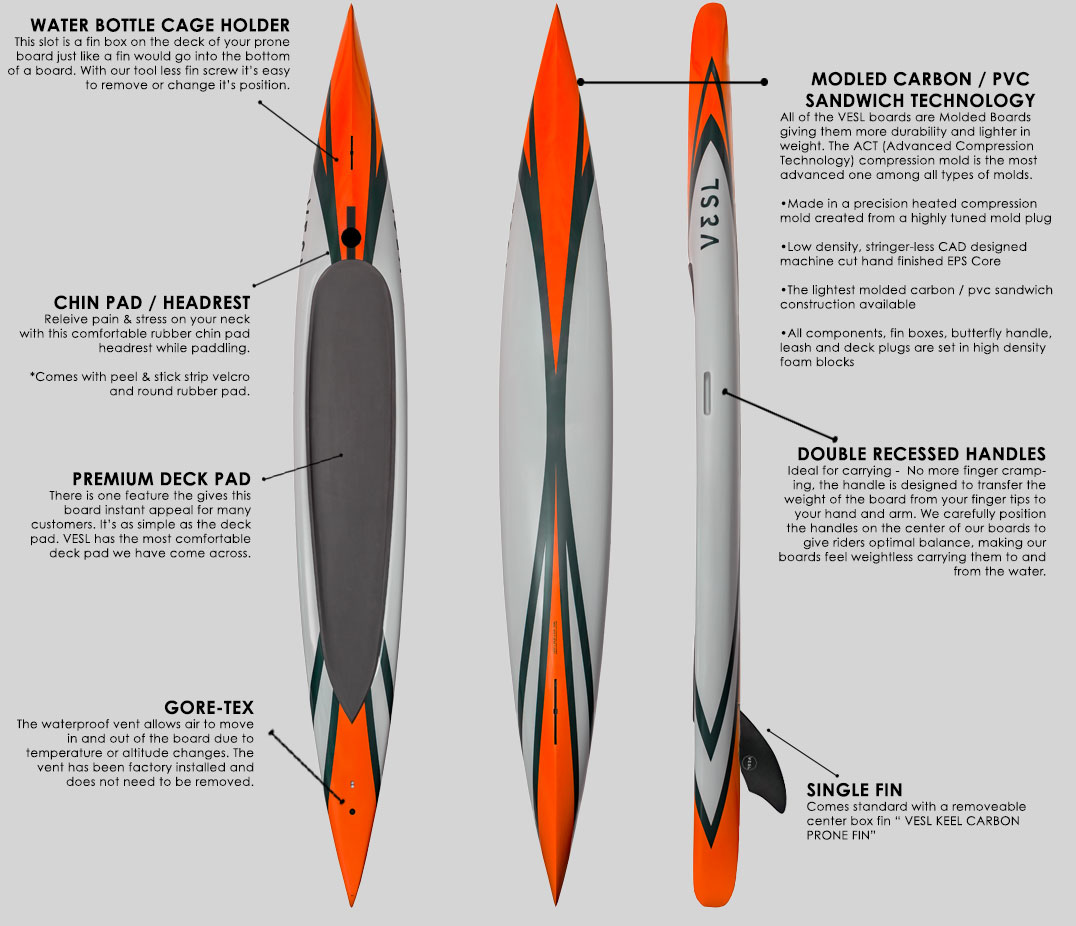 VESL’s latest carbon prone paddleboard collection has been meticulously refined through years of research, testing, and innovation to deliver unmatched performance and responsiveness on the water. Each board features a newly tuned shape that helps paddlers of all experience levels go farther and glide faster with greater efficiency.
